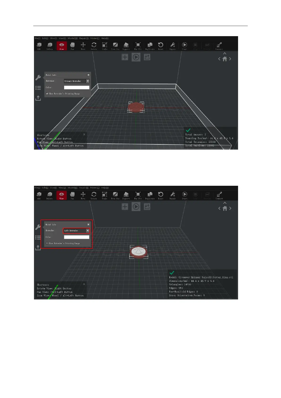 Choose one of the models and set the designated Extruder as Left Extruder from the left side