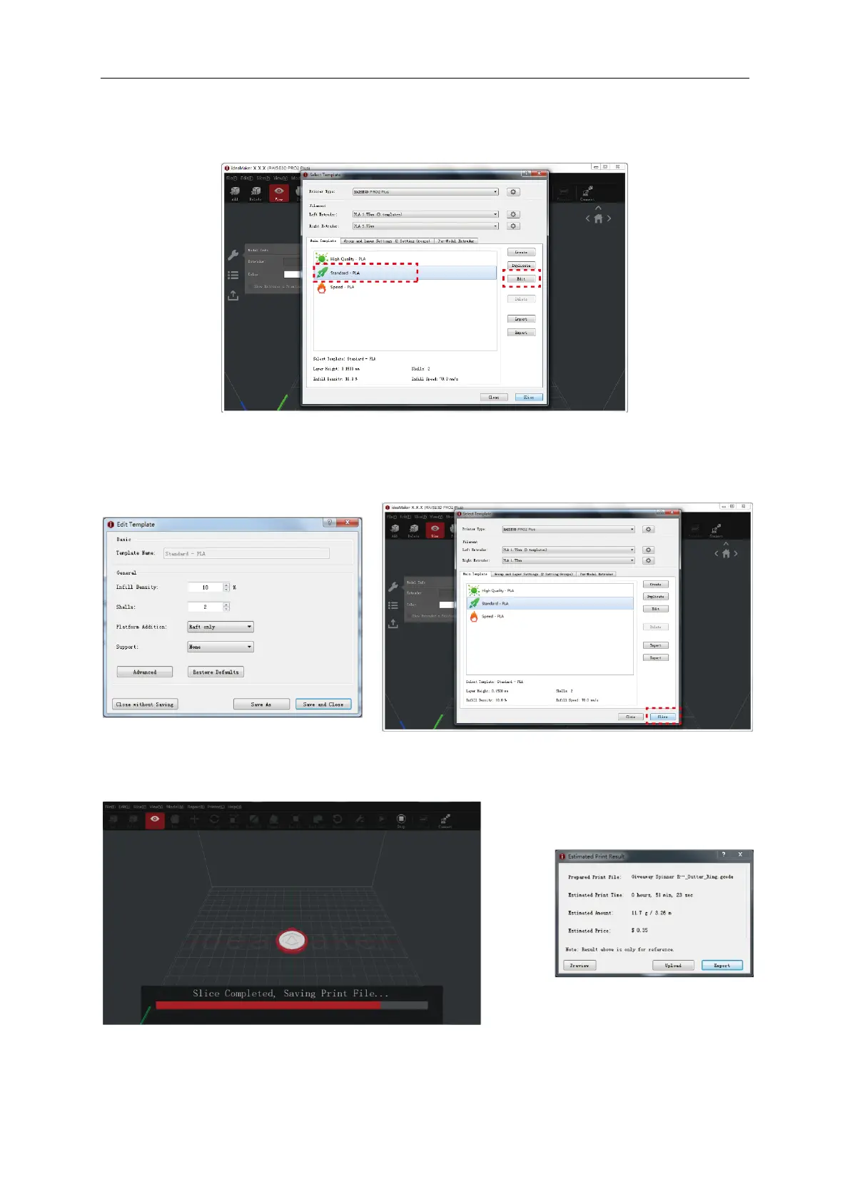 ➢ Save the sliced files (.gcode and .data) to your USB storage drive.