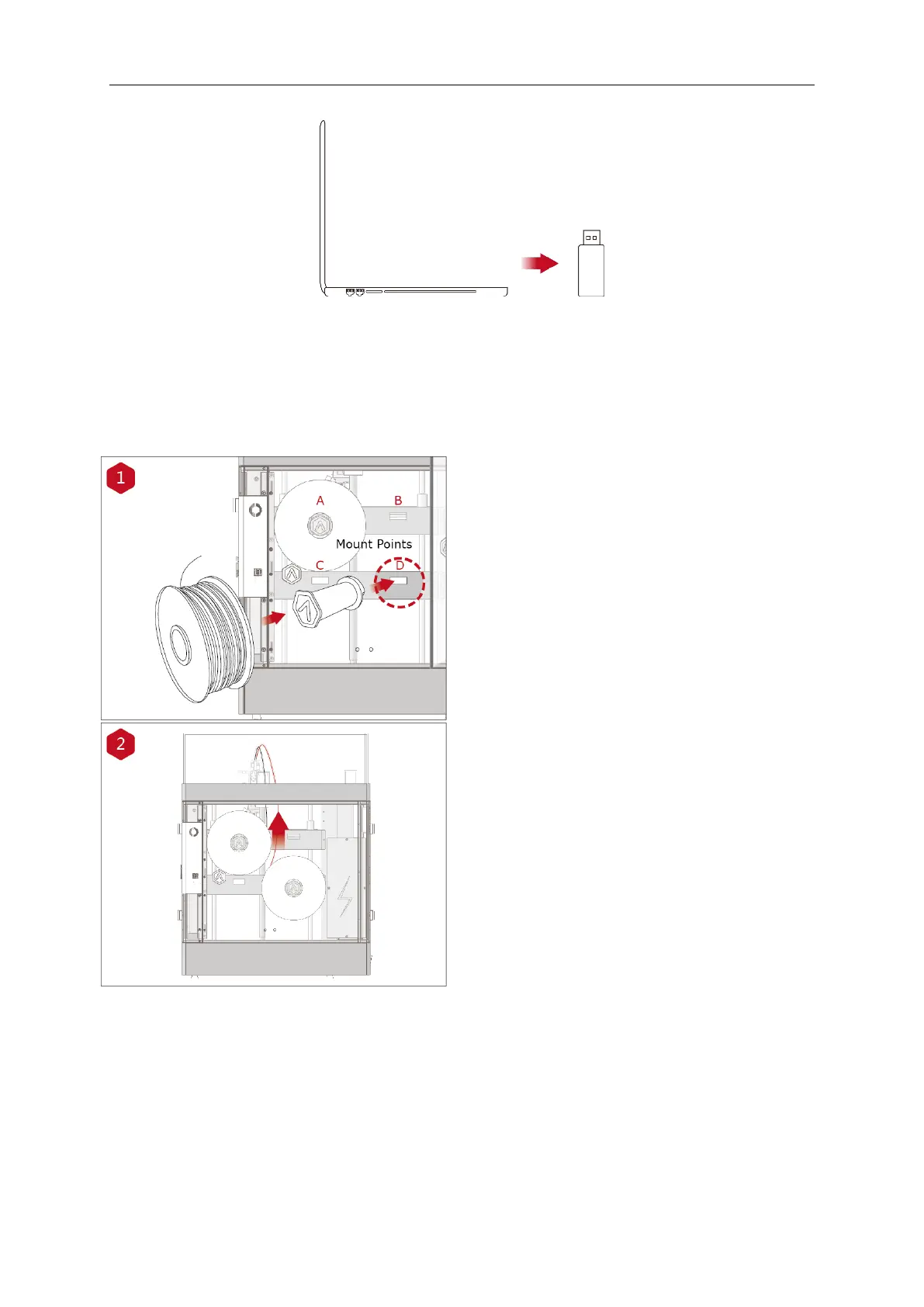 The following steps show how to feed the right nozzle. For the other hardware installations steps please
