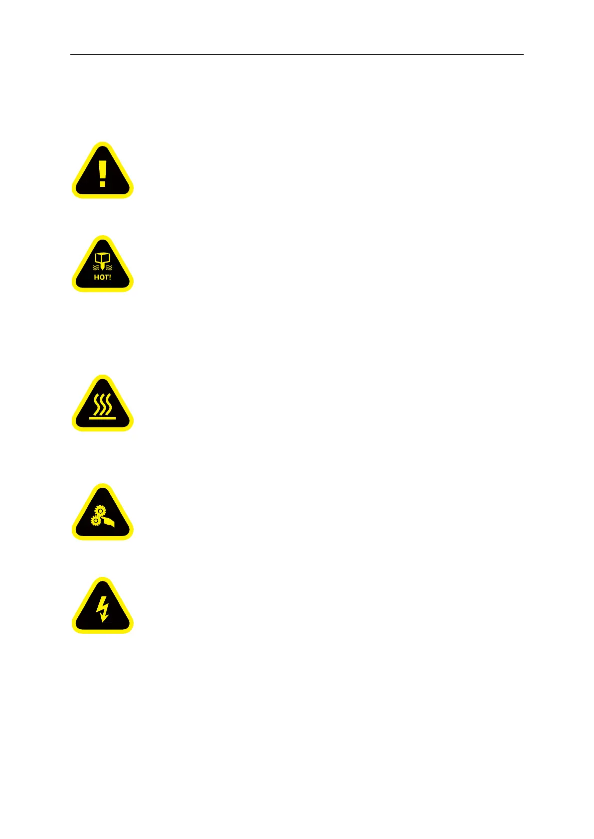 Hot Surface: The hot surface sign indicates the presence of devices with high temperatures.