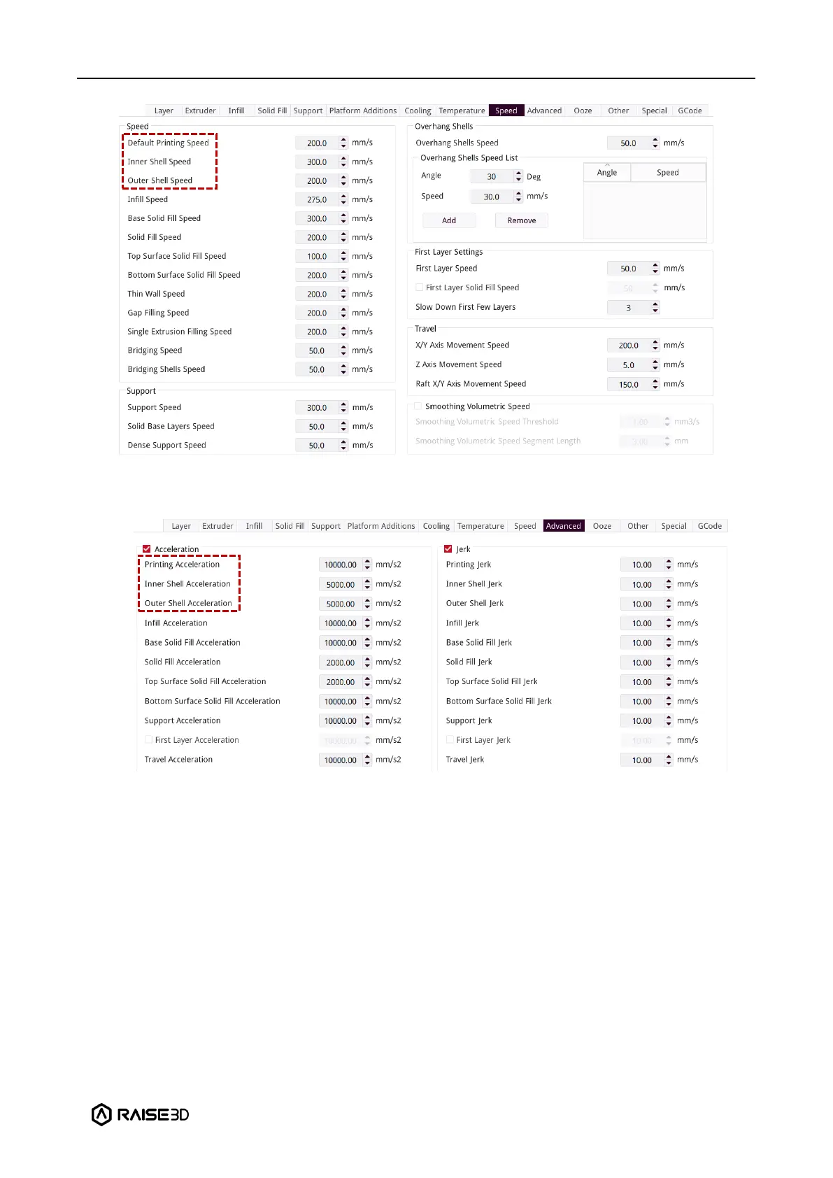 Acceleration judgment includes Printing Acceleration, Inner Shell Acceleration and Outer