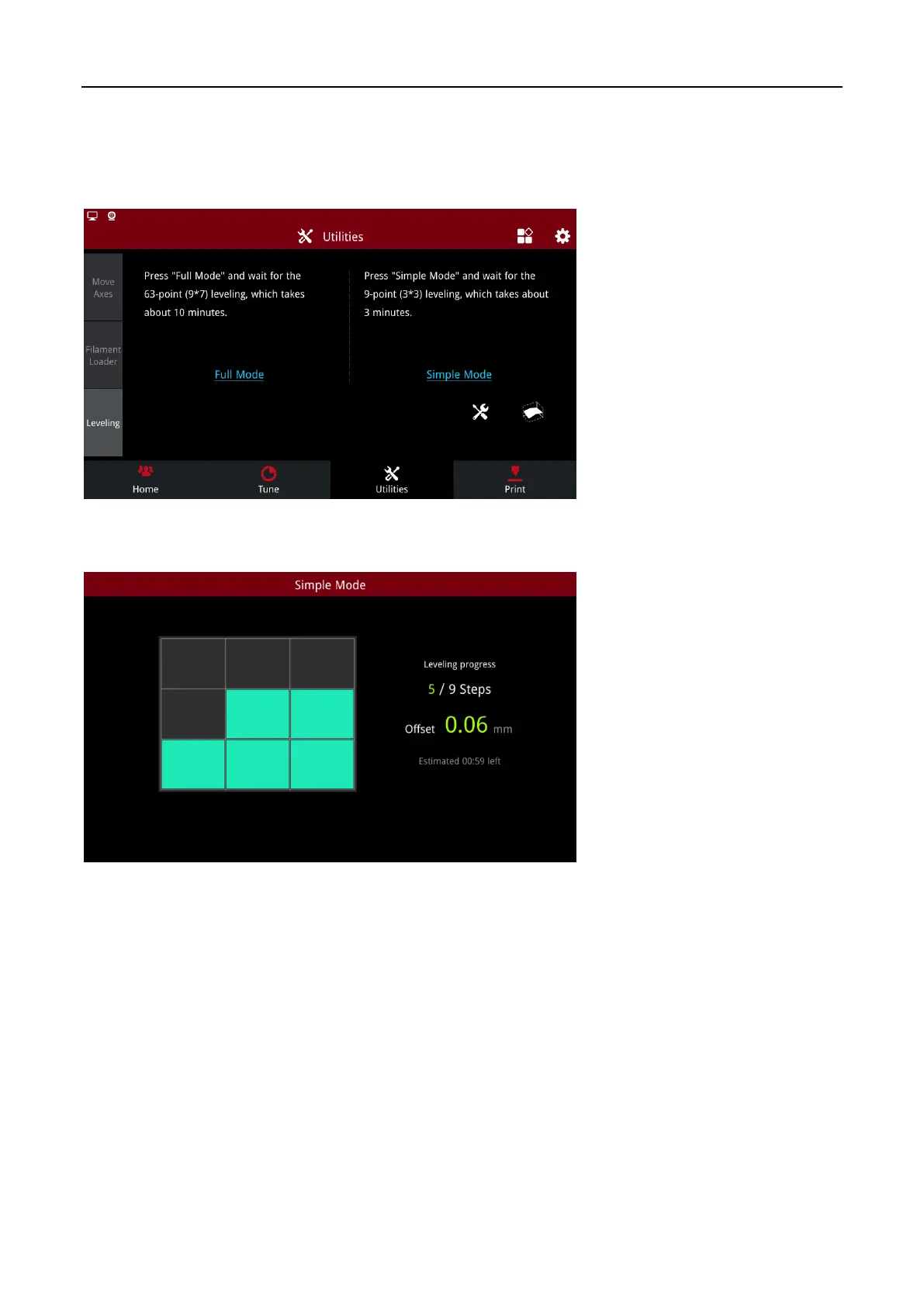 Select Simply Mode, the printer will automatically carry out 9-point levelling.