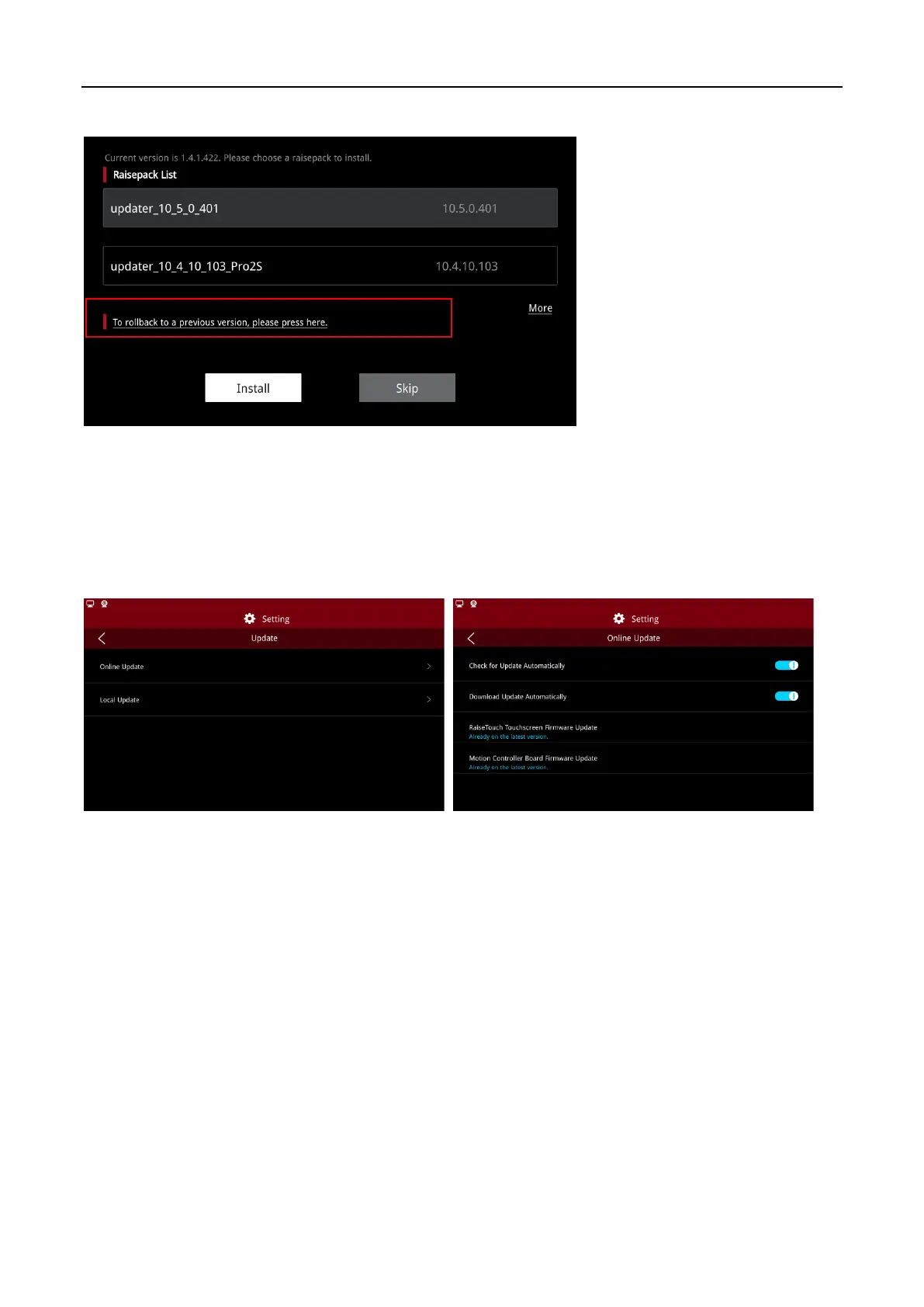 Click on “Update >Online Update”, to choose whether to turn on the automatic detection update.
