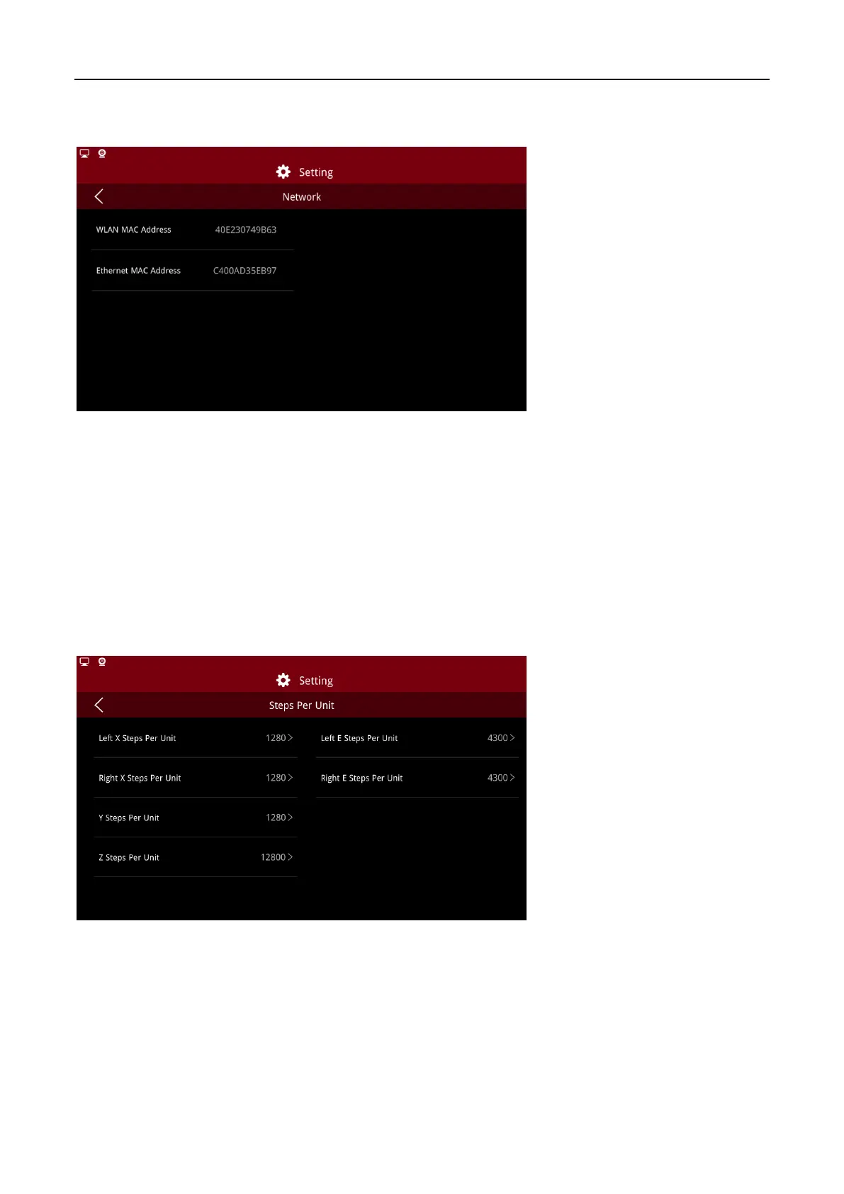 For example, if the X Step Per Unit is 80, it means that the stepping motor that controls the X axis to