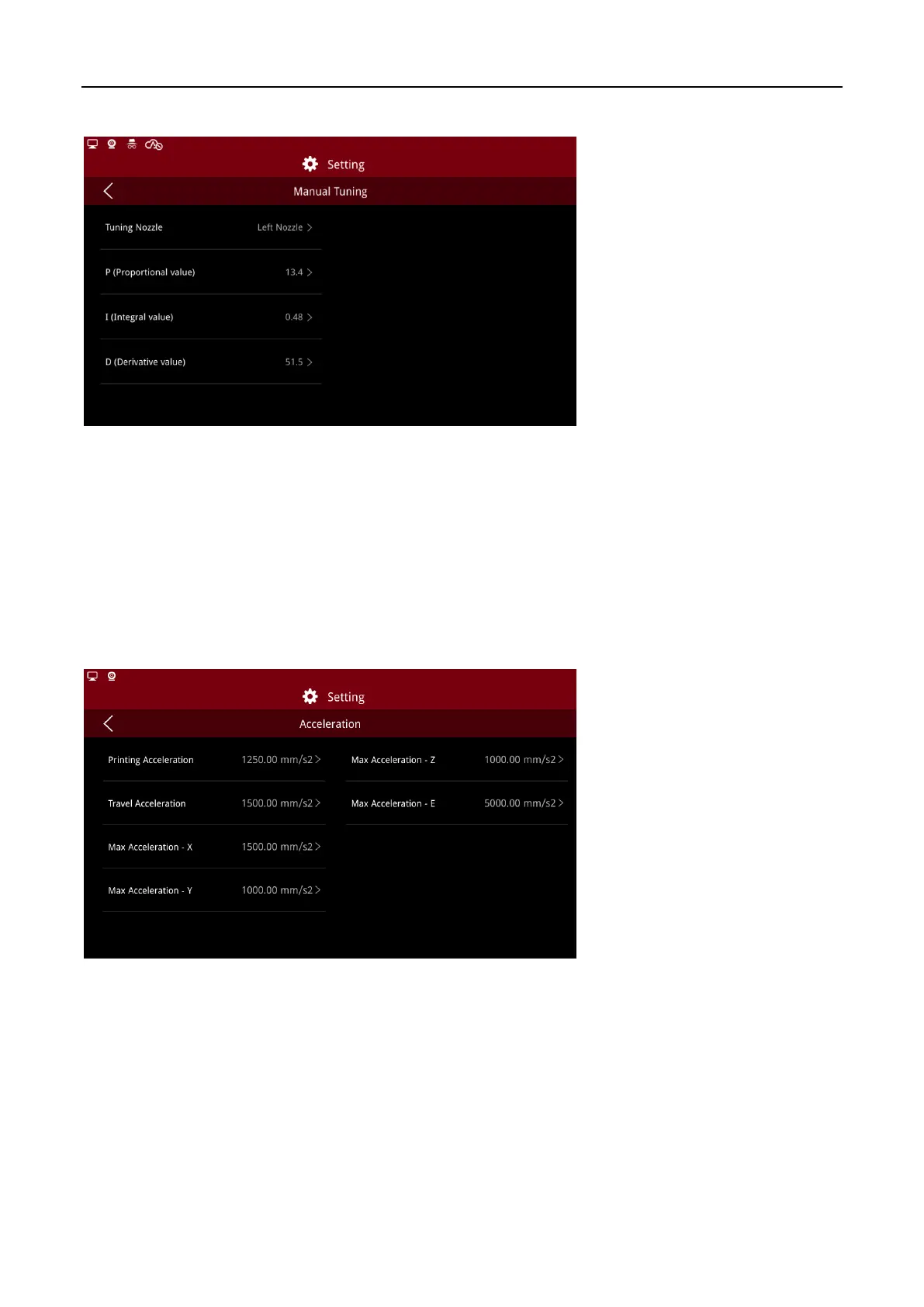 Note: The value will affect the print quality, do not change optionally.