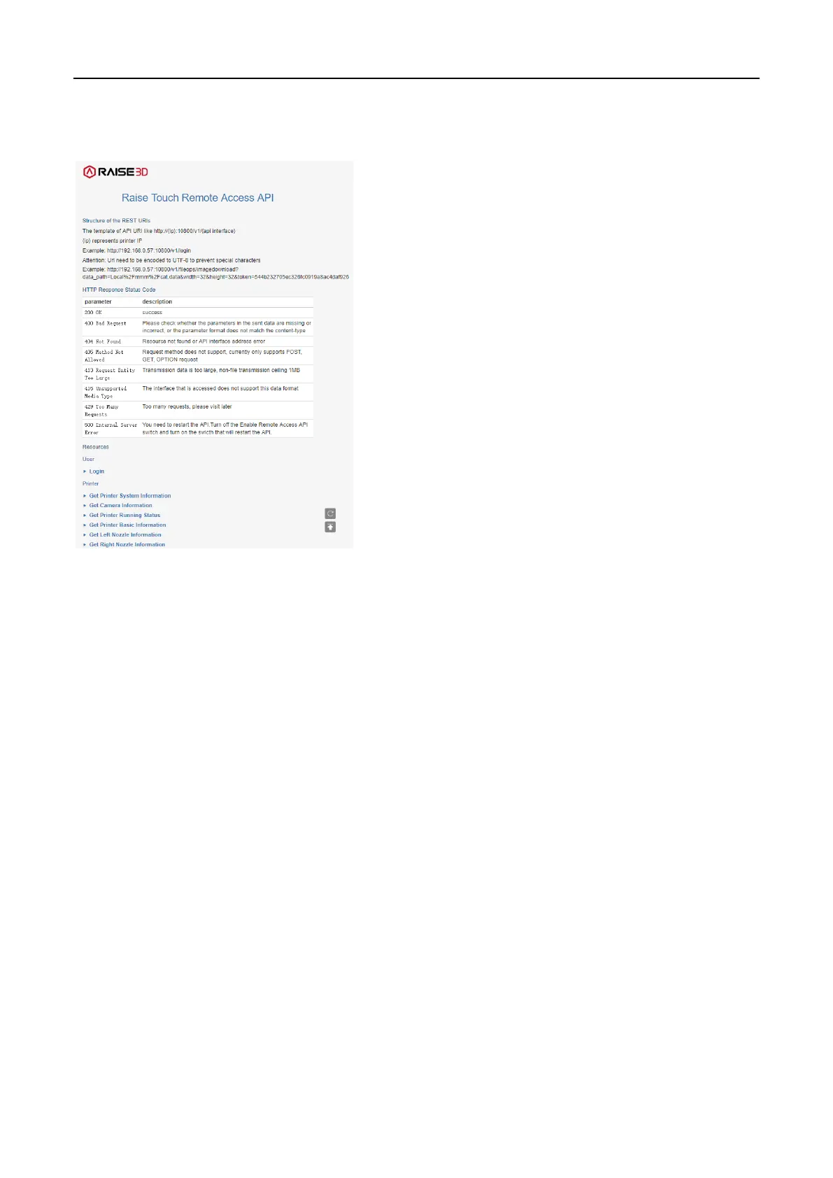 You can browse the API documentation by visiting http://xxx.xxx.xxx.xxx:10800 (on behalf of the printer
