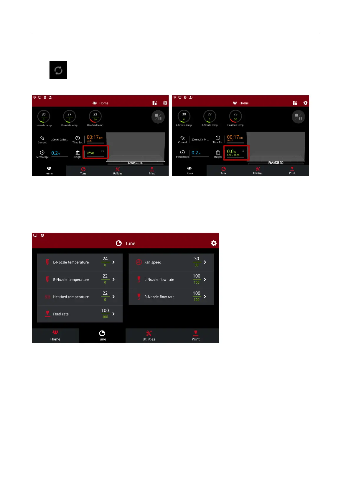 R-Nozzle temperature: The temperature of the right nozzle.