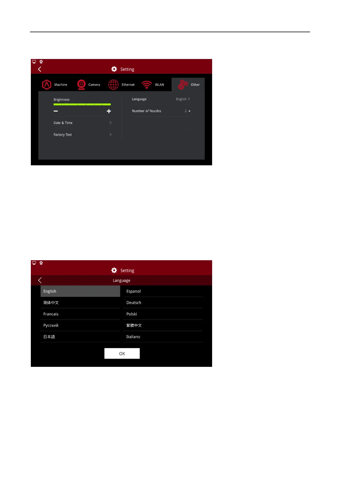Choose the language applied to your printer. Options are available in English, simplified Chinese,