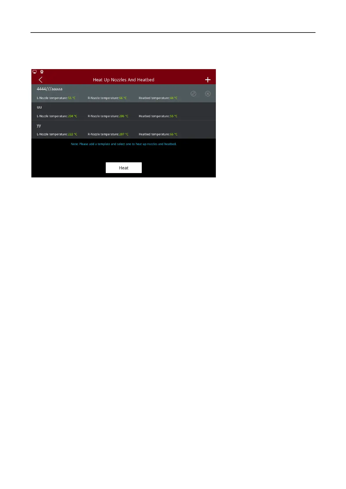 the template is selected, the “Heat” button will be displayed. Click the “Heat” button and the printer