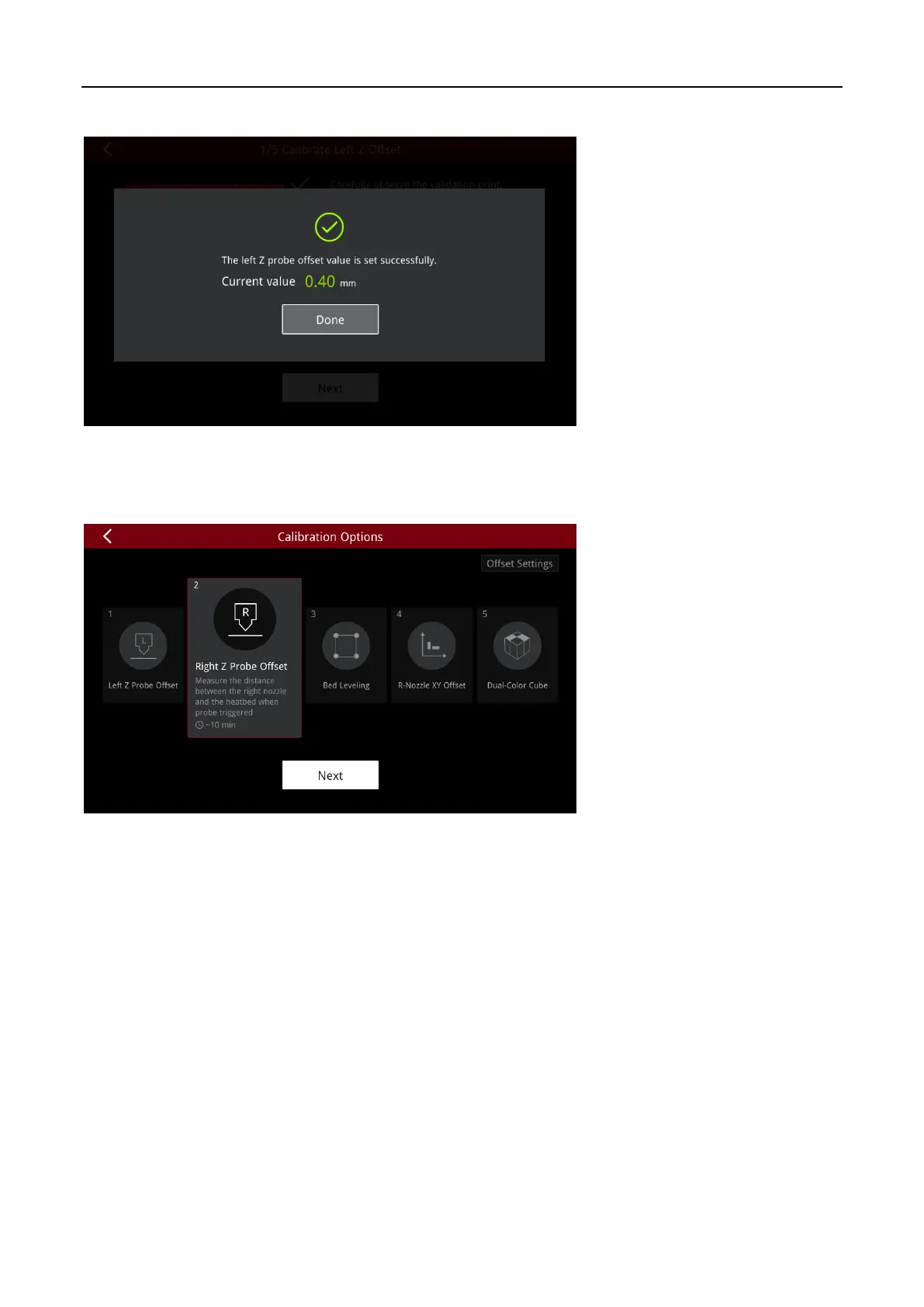The Right Z Probe Offset calibration method is as the same as that of the left nozzle, please follow the