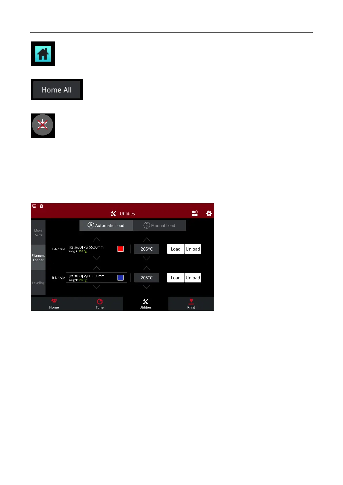 Click “Filament Loader” on the left to enter the Filament Loader page, the Automatic Load page will