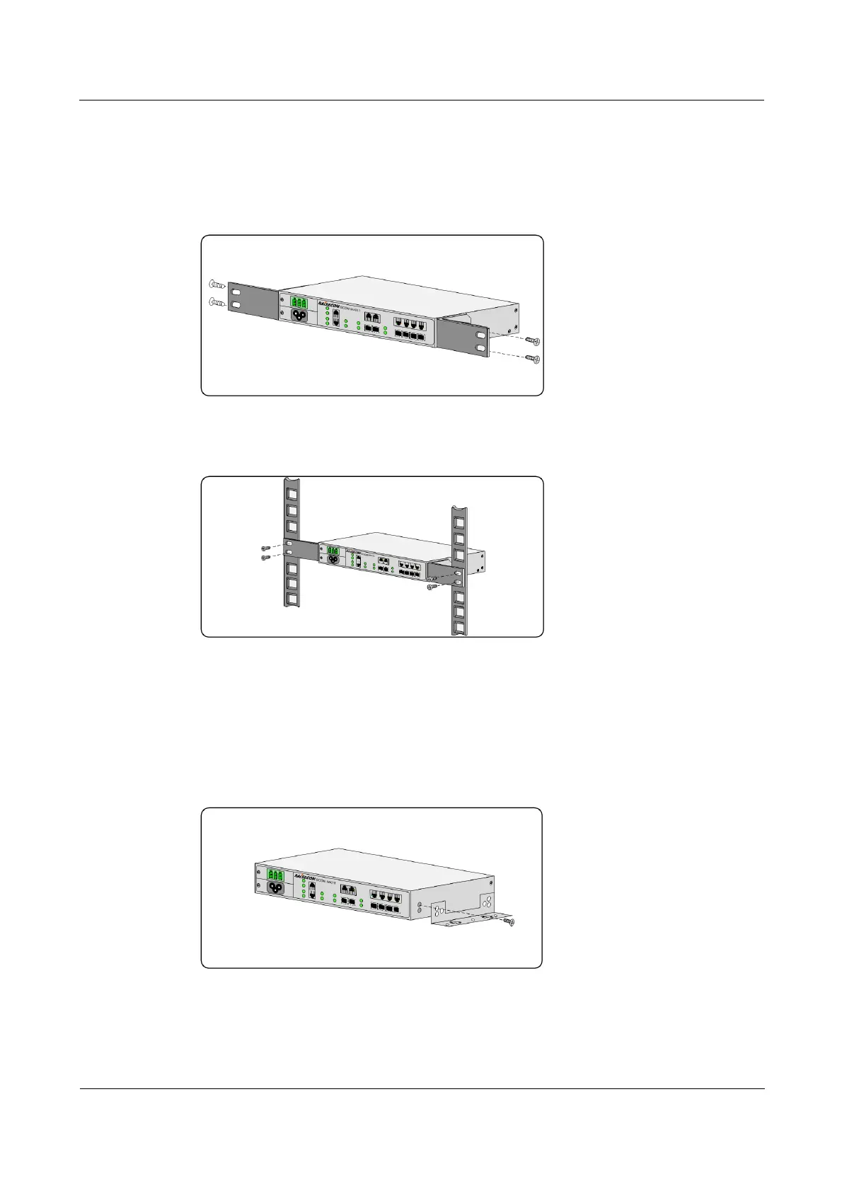 Step 1 Install two long wall-mount brackets to two sides of the ISCOM RAX711 respectively (take