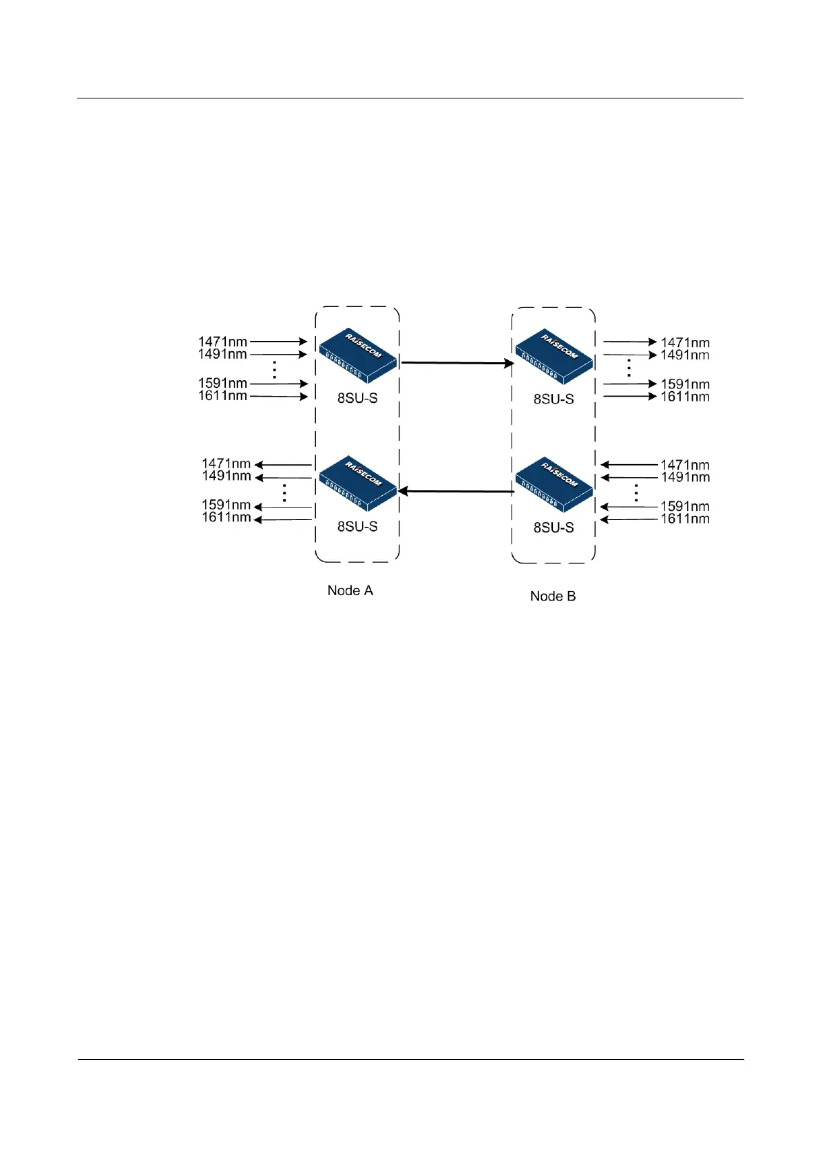 these signals and then sends them out. In opposite direction, Node B multiplexes optical