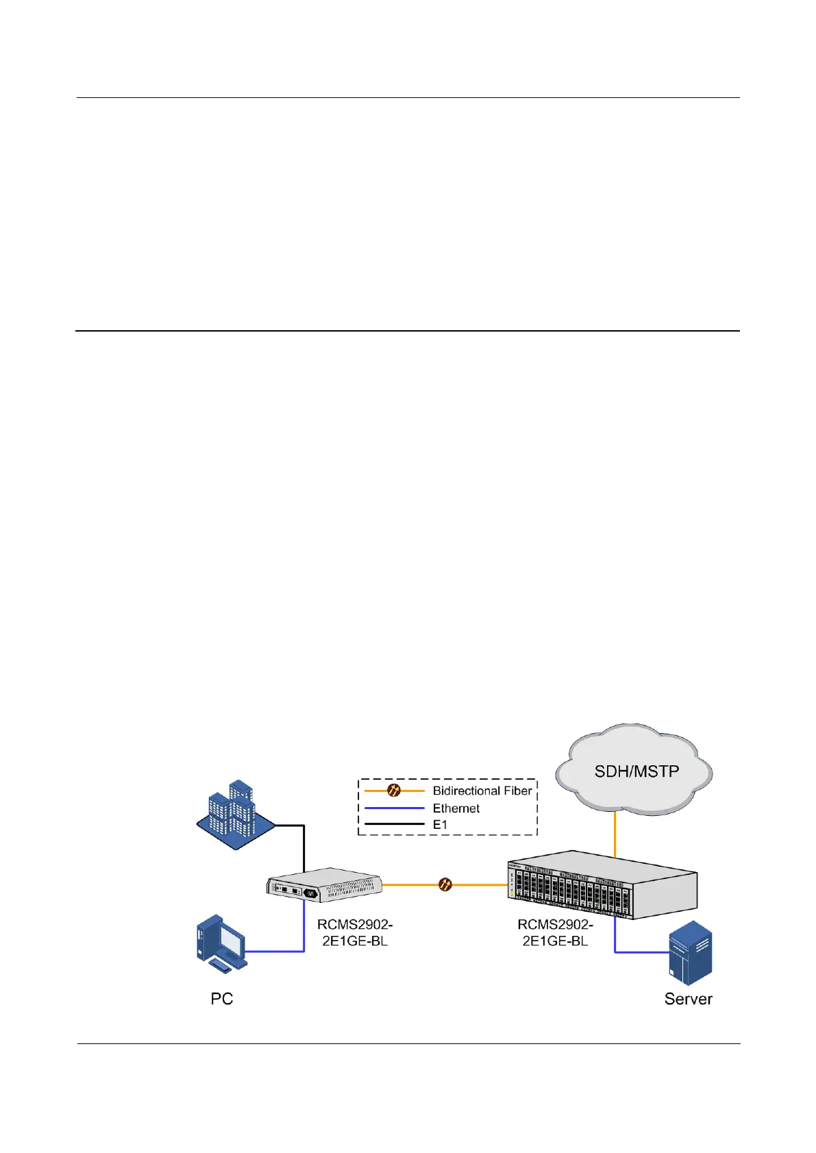Figure 5-1 shows a typical networking application with the RCMS2902-2E1GE-BL.