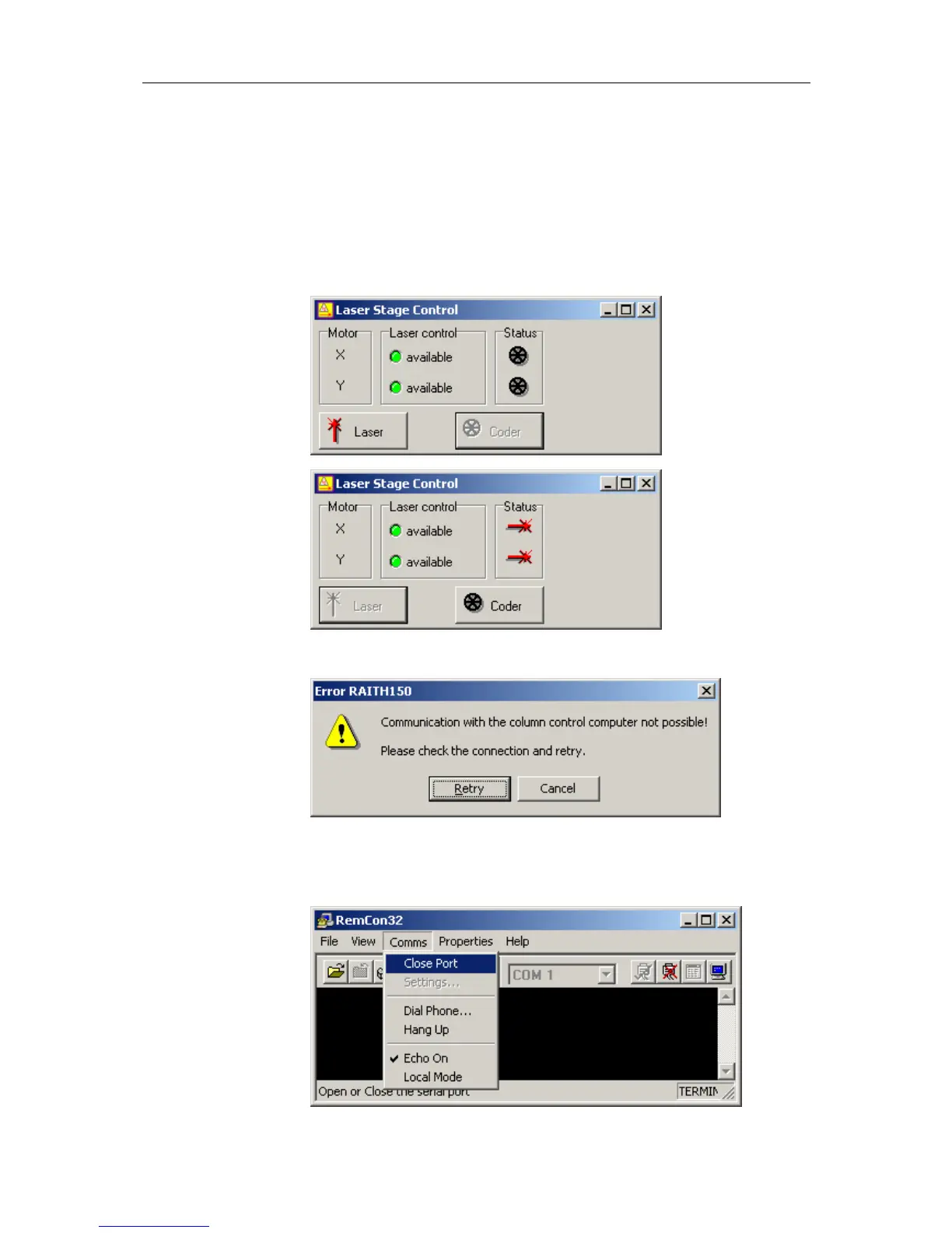Cause / solution Check if the RenCom32 program is running on the SEM PC. If not