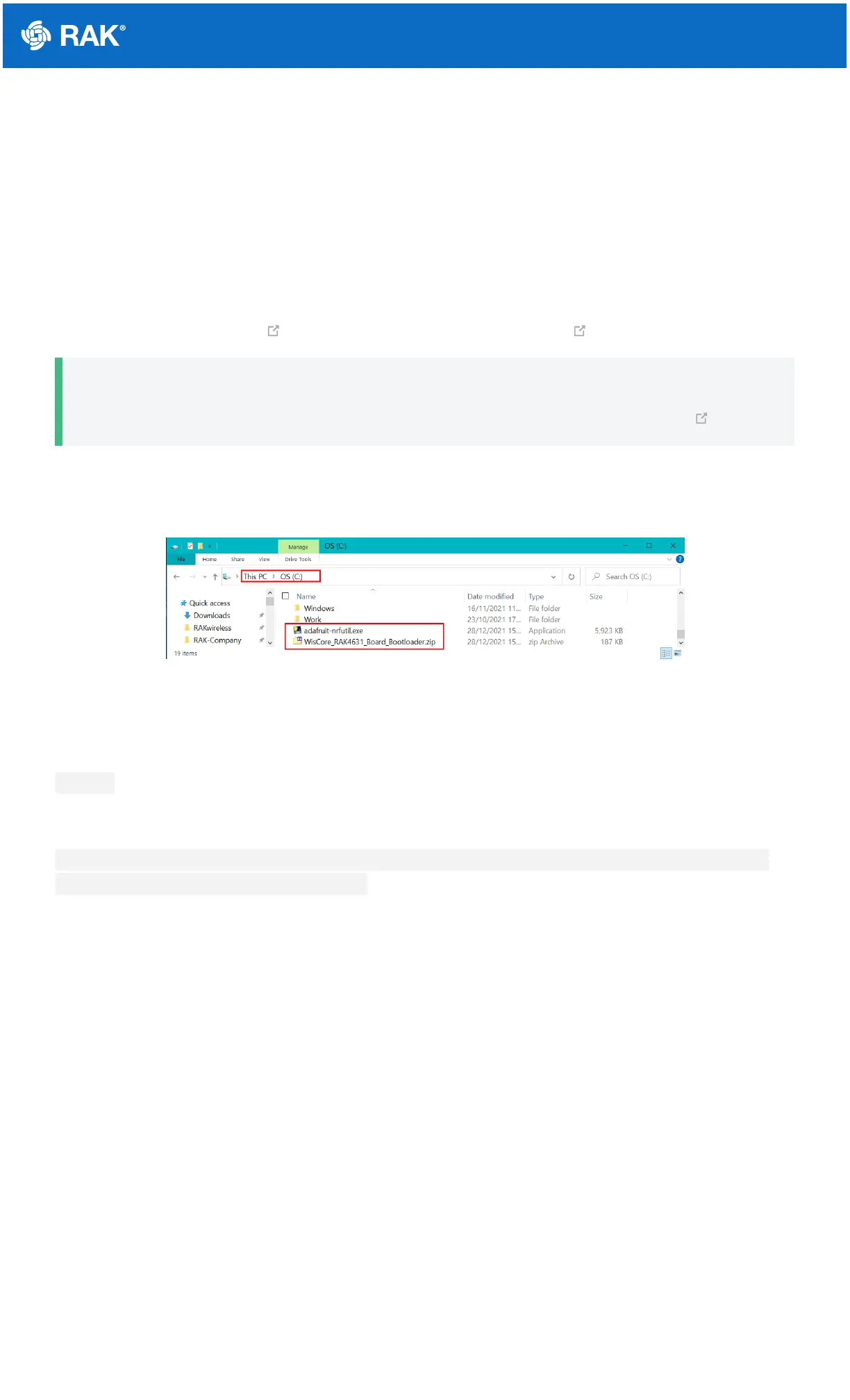 Download the adafruit-nrfutil.exe and the latest RAK4631 bootloader firmware .