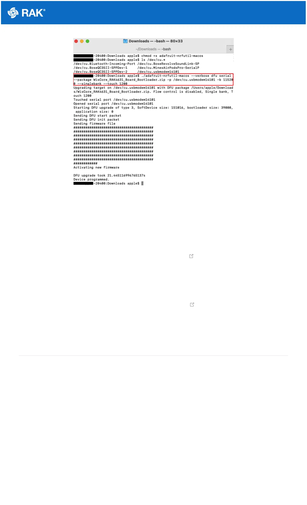 Your RAK4631 will now have the updated Bootloader Firmware.