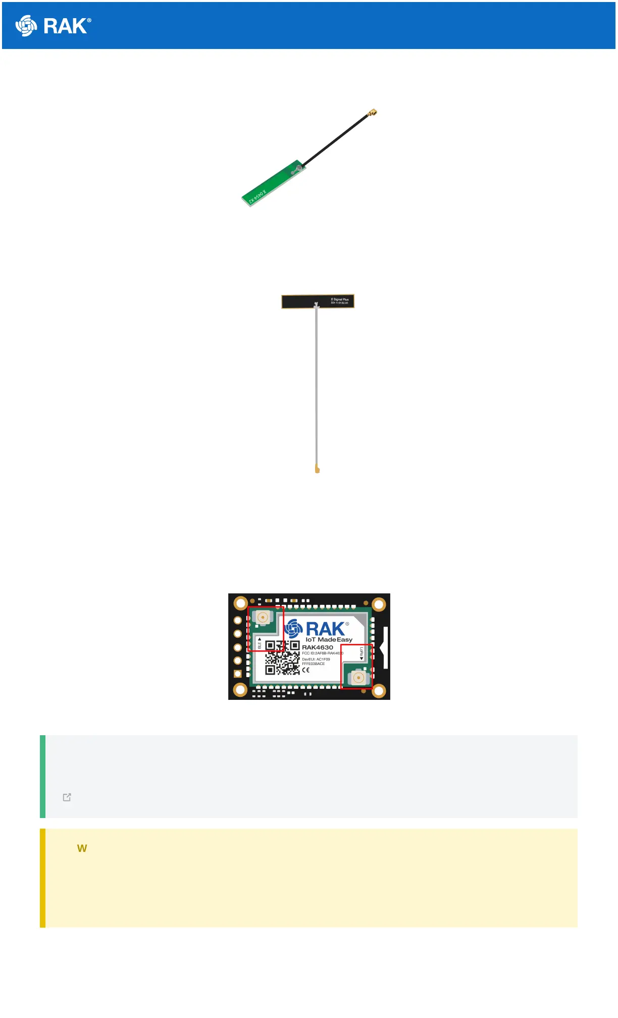 Detailed information about the RAK4631 BLE and LoRa antenna can be found on the antenna datasheet