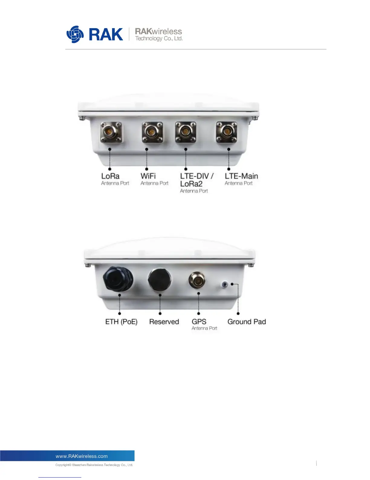 RAKwireless RAK7249 - 4 Hardware Interfaces; Figure 2 | Hardware Interfaces - Front; Figure 3 | Hardware Interfaces - Rear
