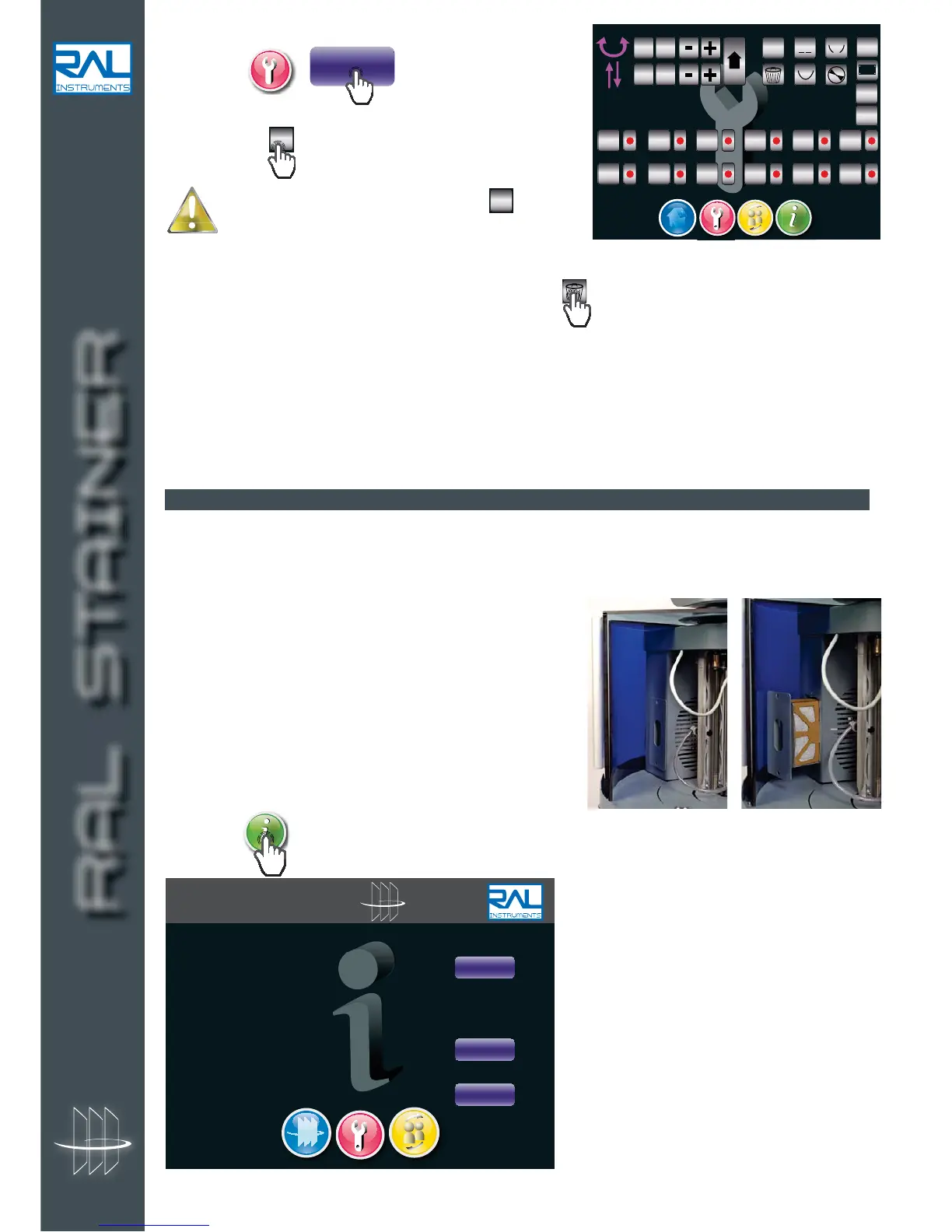 The RAL Stainer recommends the changes of the activated carbon filter cartridges.