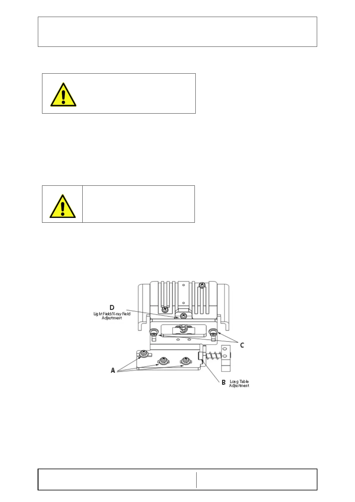 • If the light-field is bigger than the X-ray field, raise the light source by adjusting screws D.