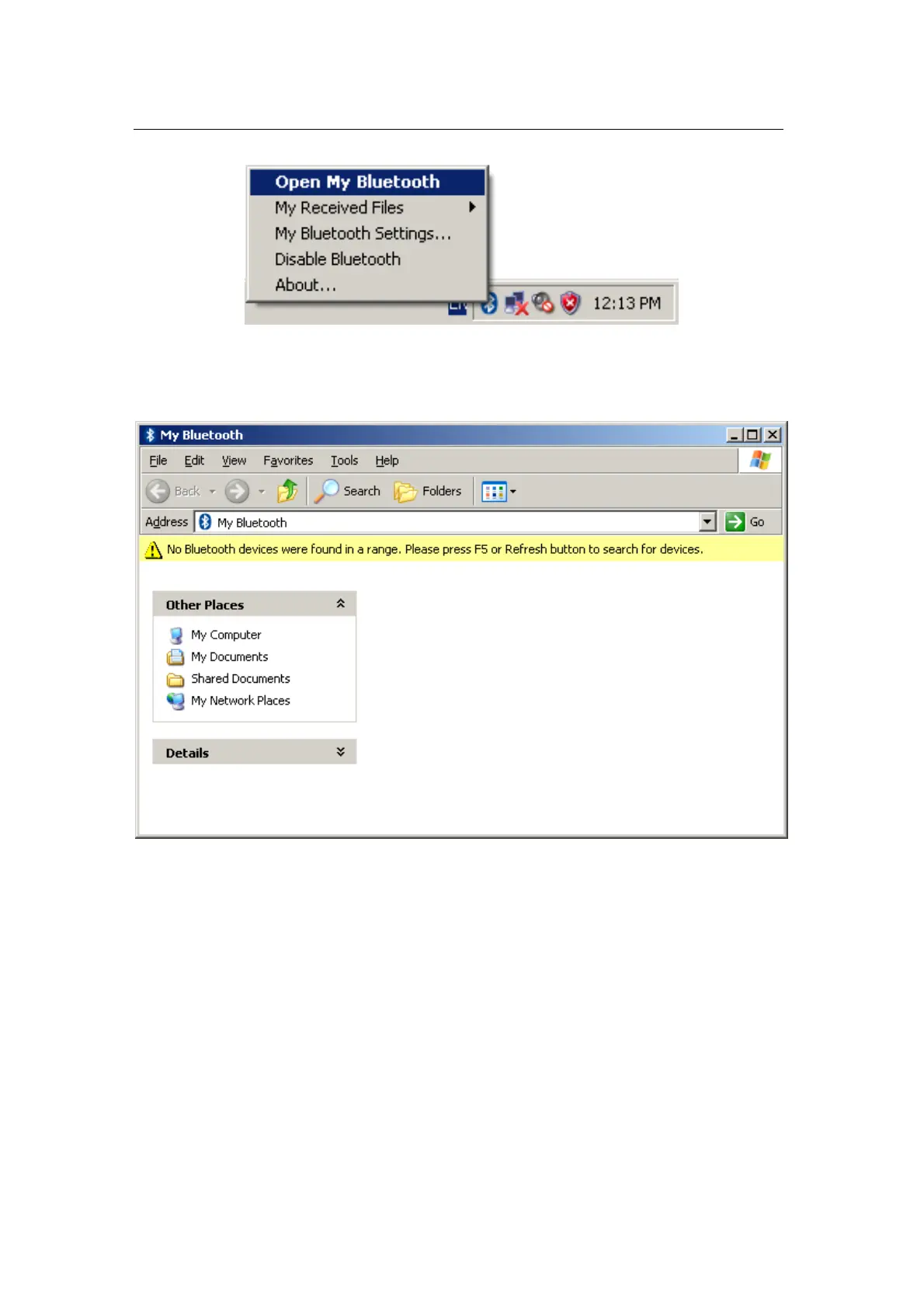 If it’s the first time you’ve opened a “My Bluetooth” window, there will