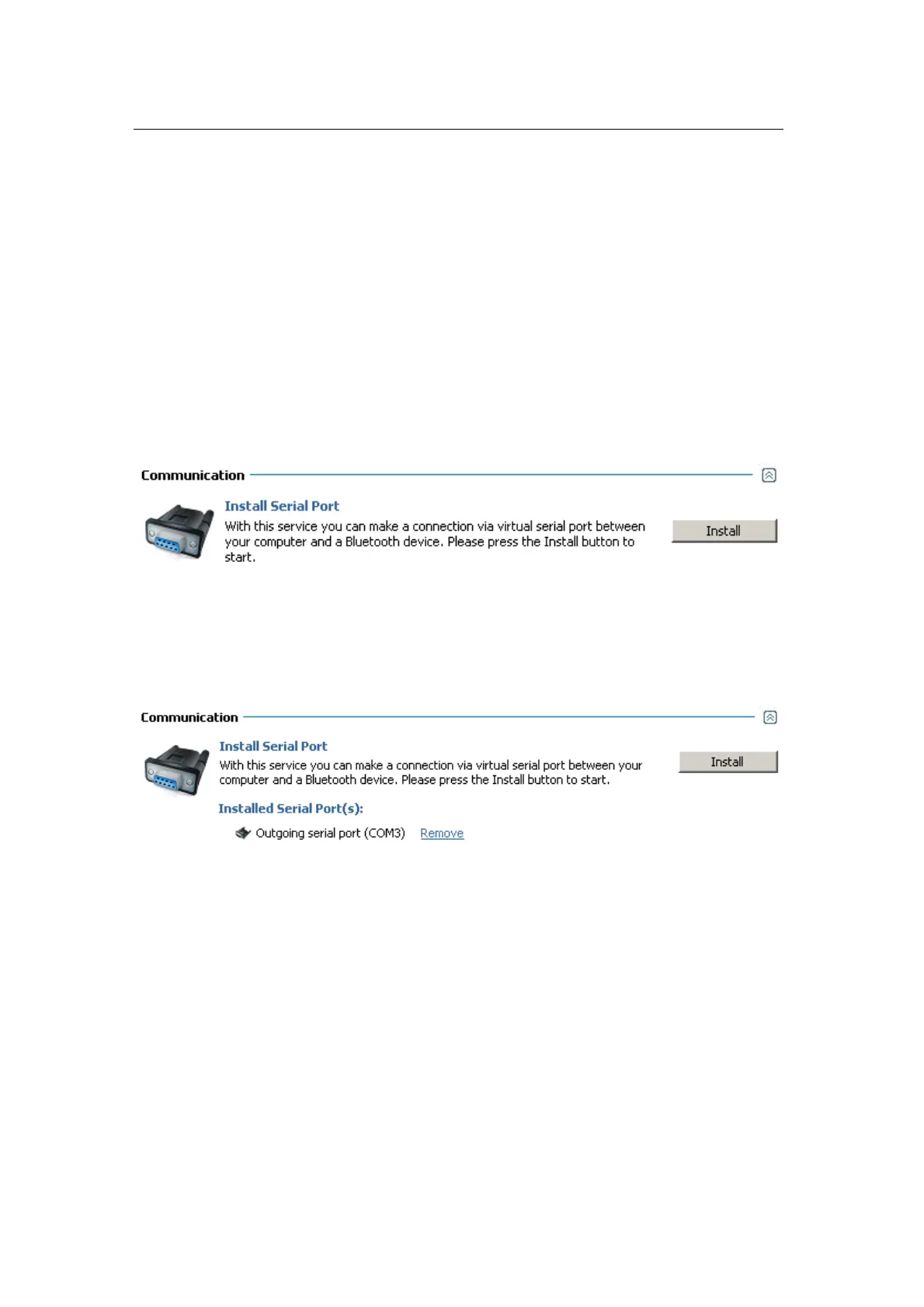 If the device supports Bluetooth serial ports, a “Communication” section