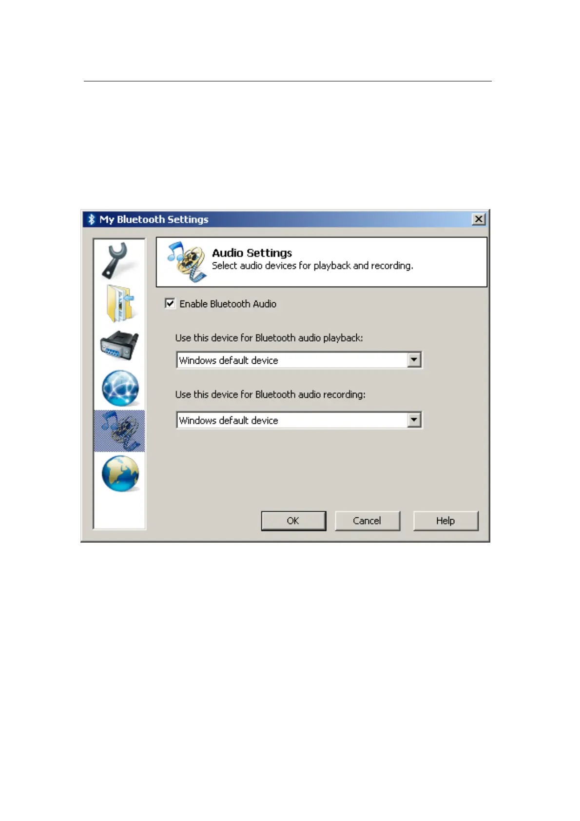 The fifth page in the “My Bluetooth Settings” window is the “Audio