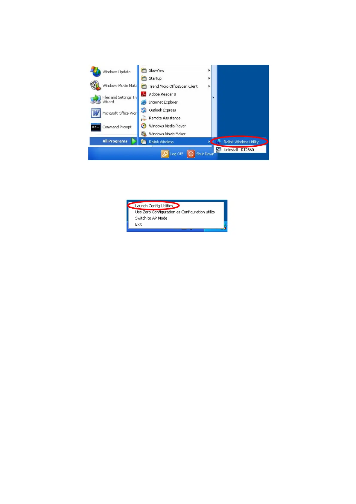 Go to StartJ (All) ProgramsJ Ralink WirelessJ Ralink Wireless Utility.