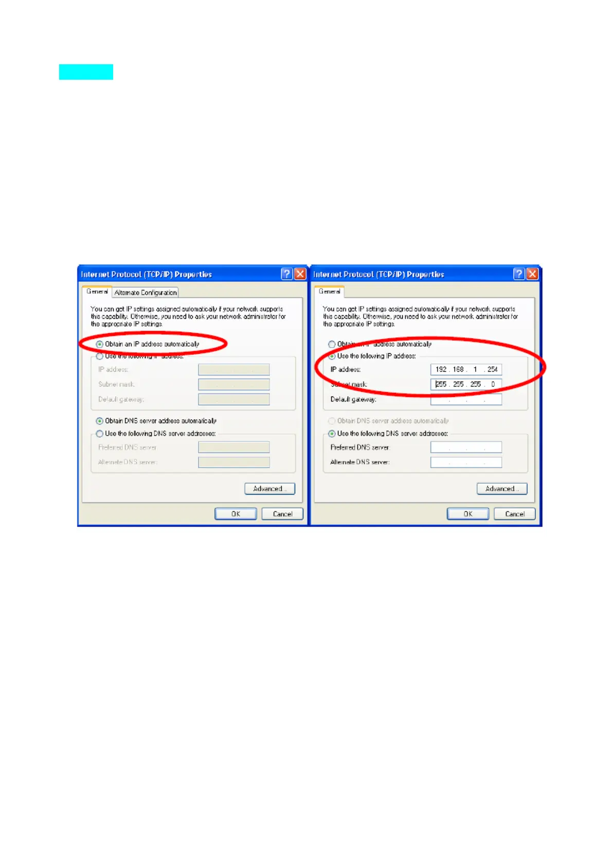 empty field; for example, enter 192.168.1.254 in the IP address field, and 255.255.255.0 for the Subnet Mask.