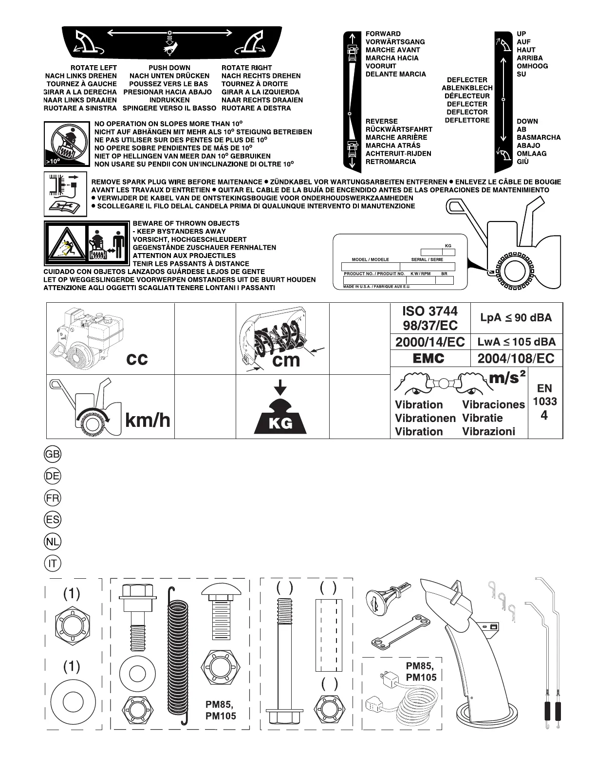 Before the snow thrower can be used certain parts must be assembled, which for transportation reasons are en closed in the