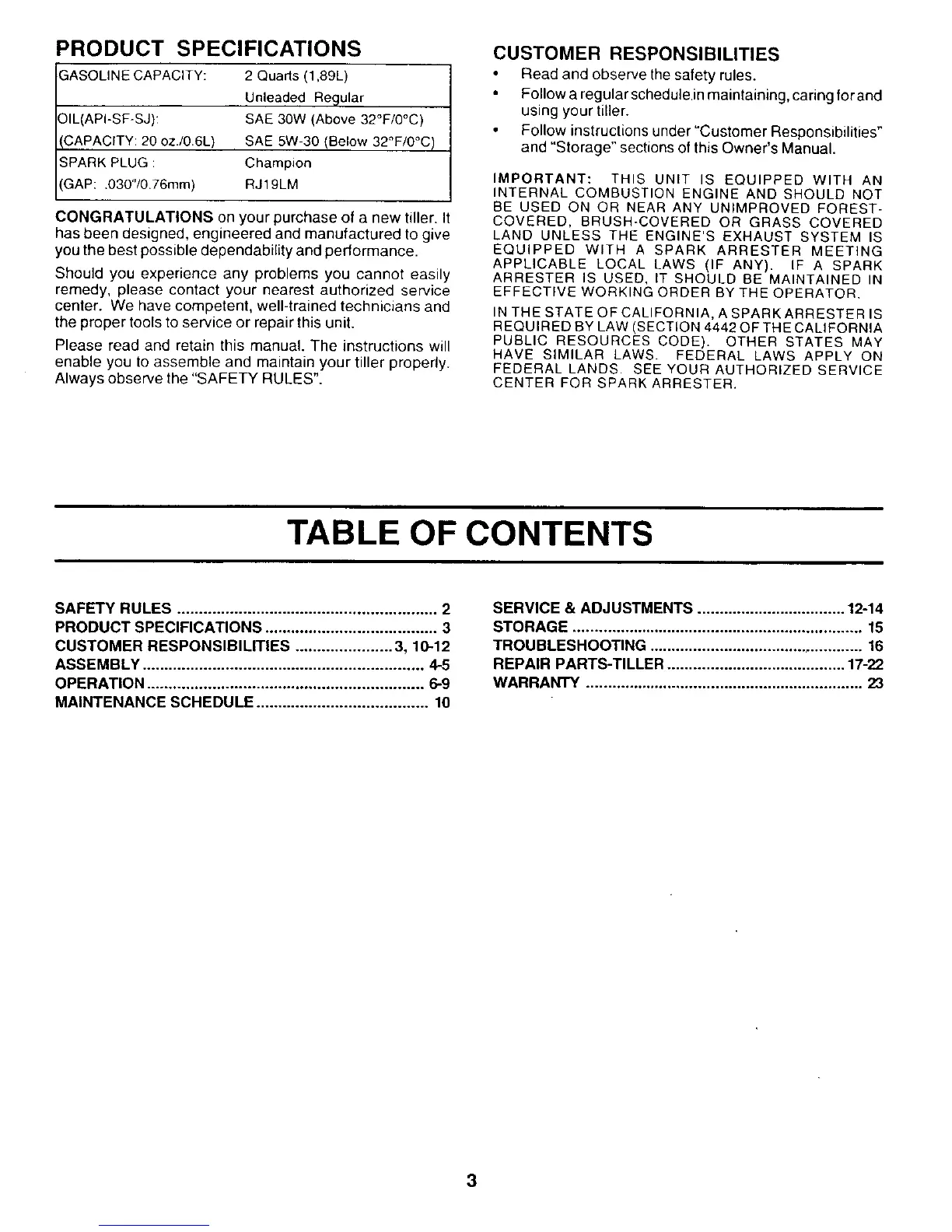 CUSTOMER RESPONSIBILITIES ...................... 3, 10-12