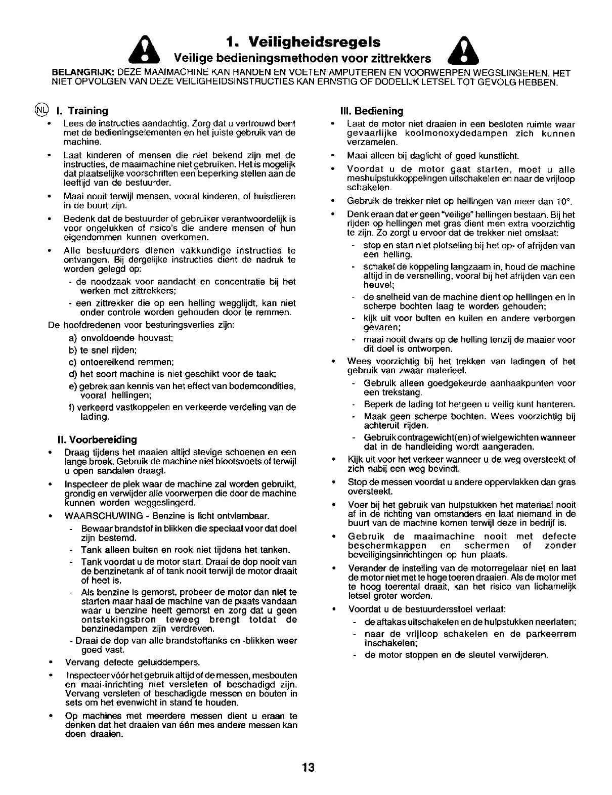 NtET OPVOLGEN VAN DEZE VEILIGHEIDSINSTRUCTIES KAN ERNSTIG OF DODELIJK LETSEL TOT GEVOLG HERREN.