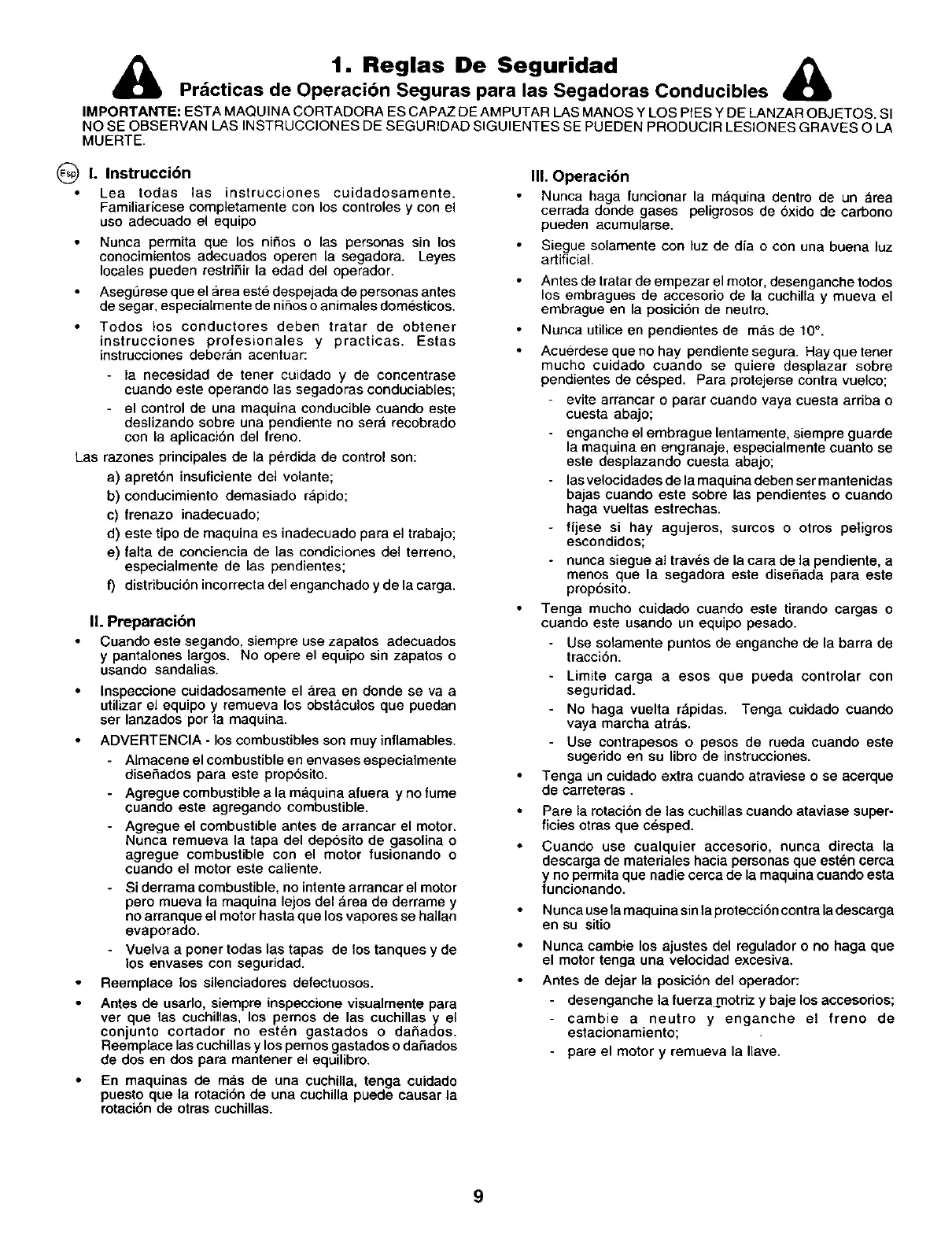 Prdcticas de Operaci6n Seguras para las Segadoras Conducibles