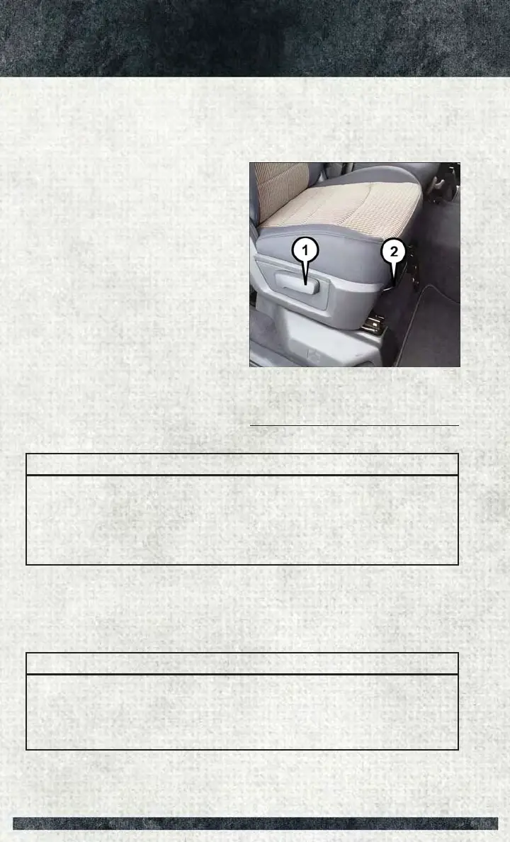 • Adjusting a seat while driving may be dangerous. Moving a seat while driving