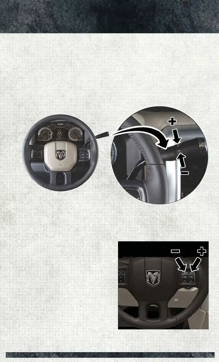 • Toggle the switch on the column gear selector down (-) or up (+) to select the