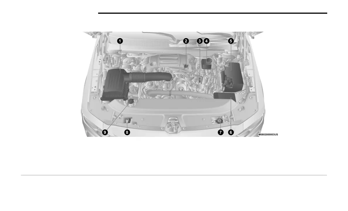 2 — Engine Oil Fill 7 — Washer Fluid Reservoir