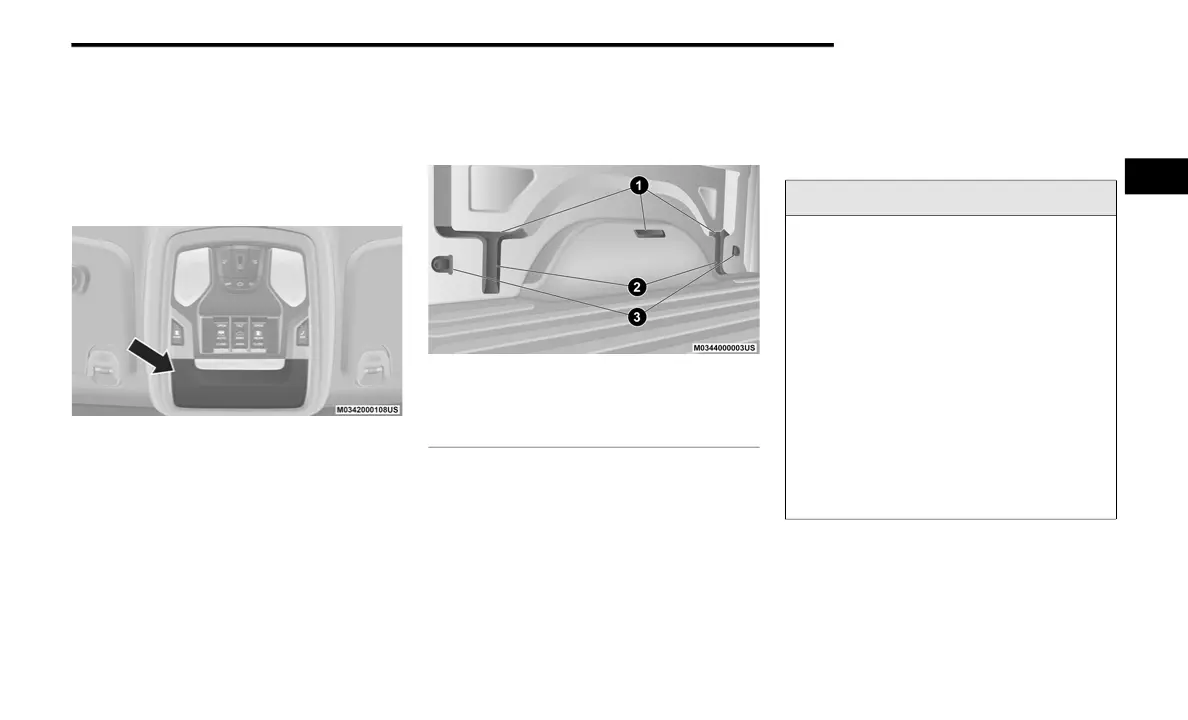 At the front of the overhead console, a