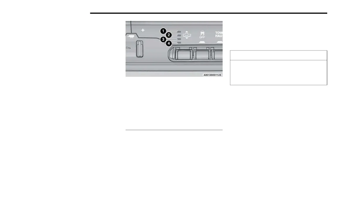 Tire/Jack Mode – Indicator lamps 5 and 1 will
