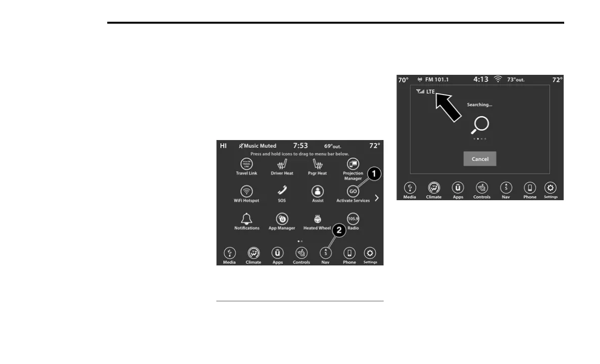 Uconnect 4C/4C NAV Connected Service Indicators