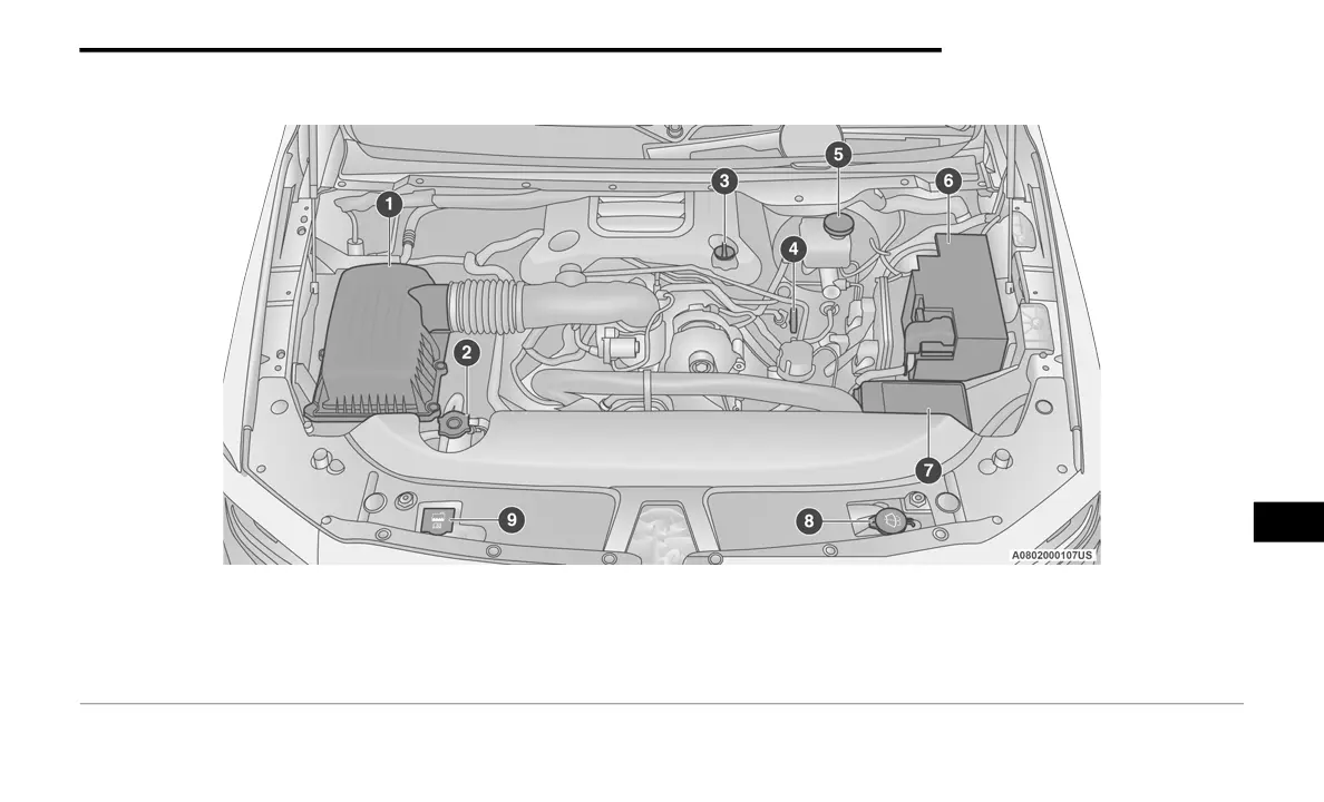4 — Engine Oil Dipstick 9 — Engine Coolant Reservoir Cap