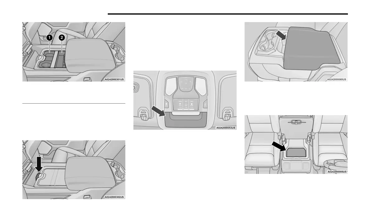 center seat back. A console storage area and