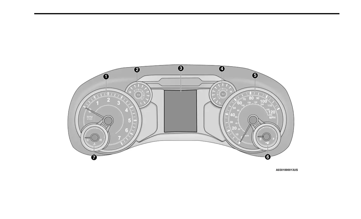 RAM 1500 4WD 2021 - 3 Getting to Know Your Instrument Panel; Base; Midline Instrument Cluster - Gasoline