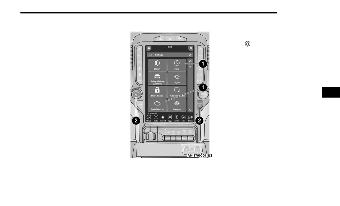 Menu or certain option on the Uconnect system.