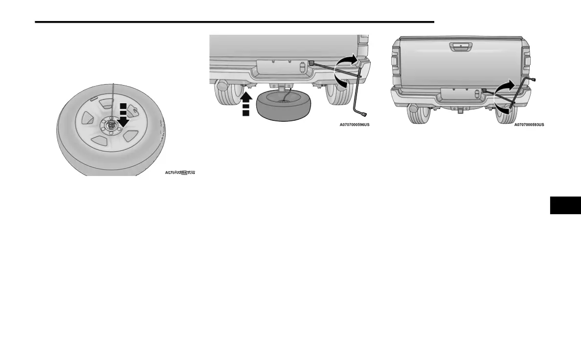 2. Lift the spare tire with one hand to give