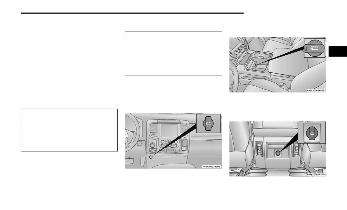 lighter” plug. The 12 Volt power outlets and USB
