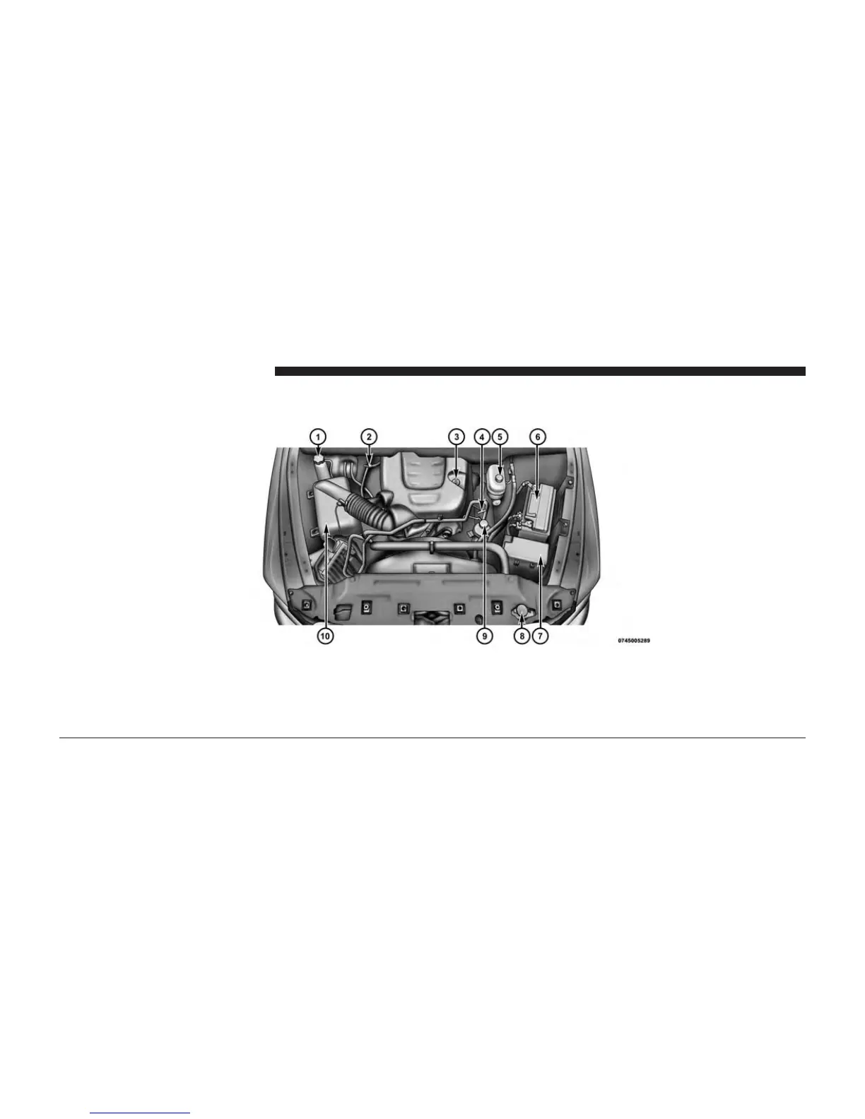 4 — Engine Oil Dipstick 9 — Power Steering Fluid Reservoir