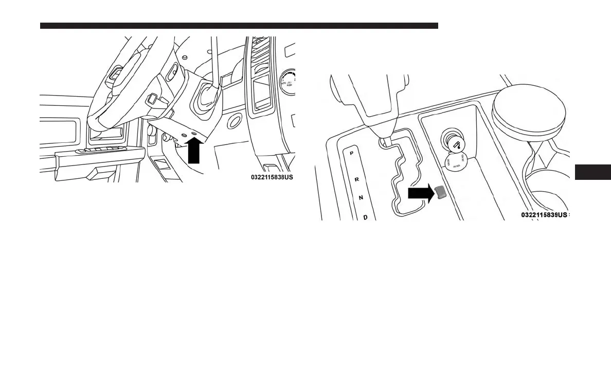 hole, and push and hold the override release lever