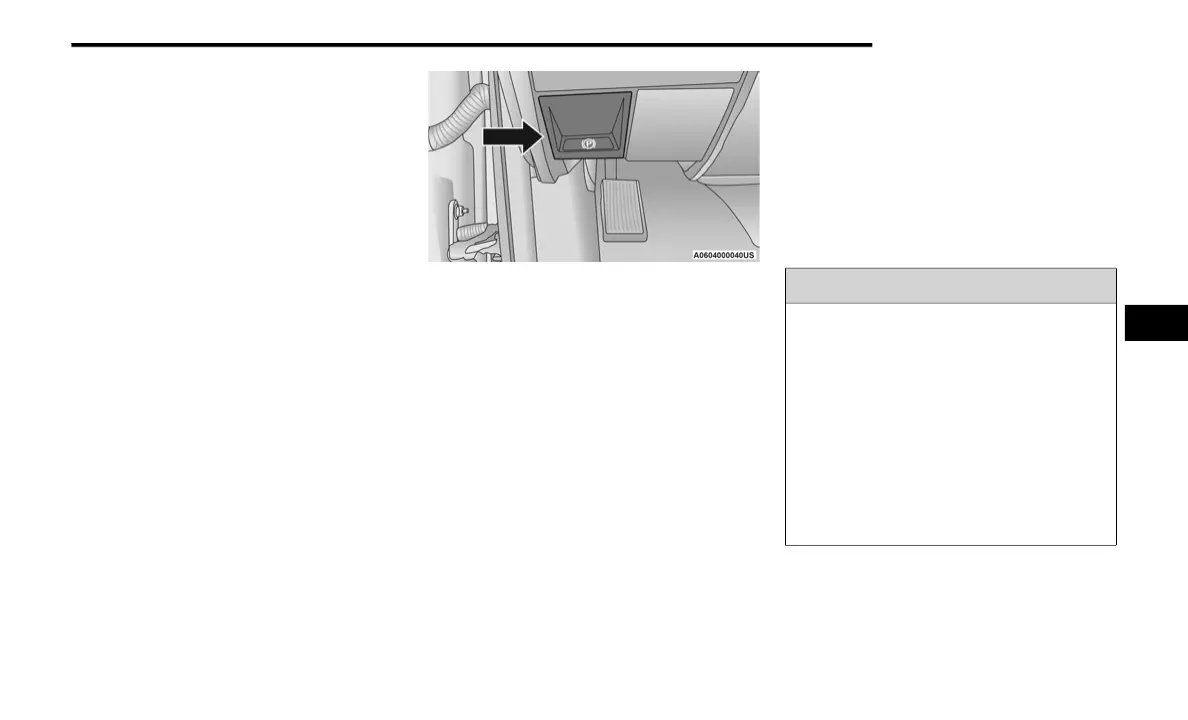 panel. To apply the park brake, firmly push the