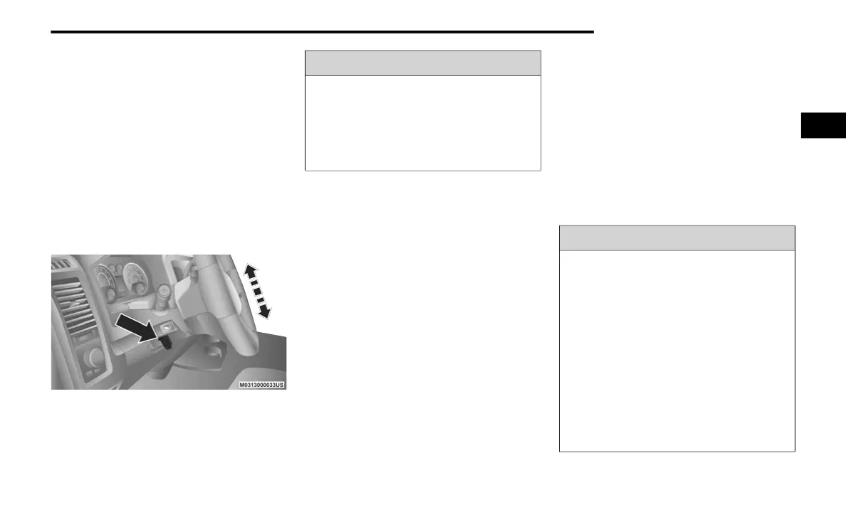 driving. Adjusting the steering column while